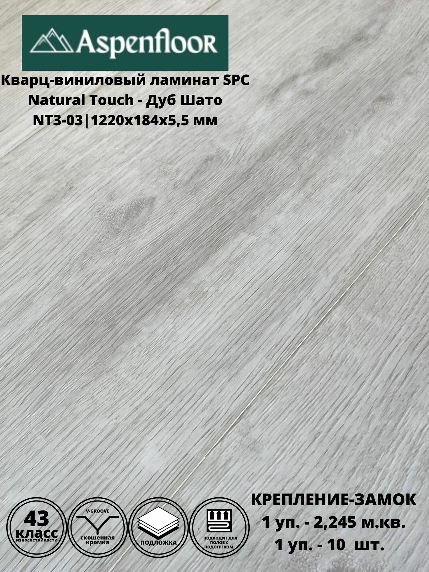 Aspenfloor Natural Touch Кварц-виниловый ламинат SPC 43 класс, 5,5мм, с интегрированной подложкой IXPE NT3-03 Дуб Шато 4V 1220x184x5,5мм/0,5мм (2,245м2/10шт) 4680427066344