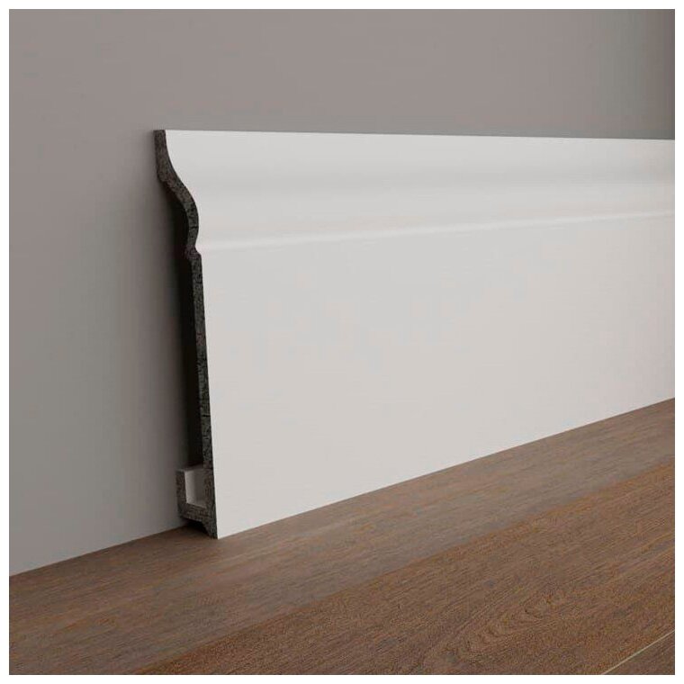 Плинтус дюрополимер напольный Экополимер Marca-Bello Centro 100, 2000x100x16 мм, белый интересное: