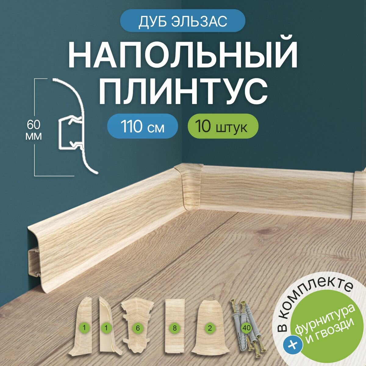 Купить Плинтус напольный, 10шт 1100x60 мм, с кабель-каналом , цвет Дуб Эльзас