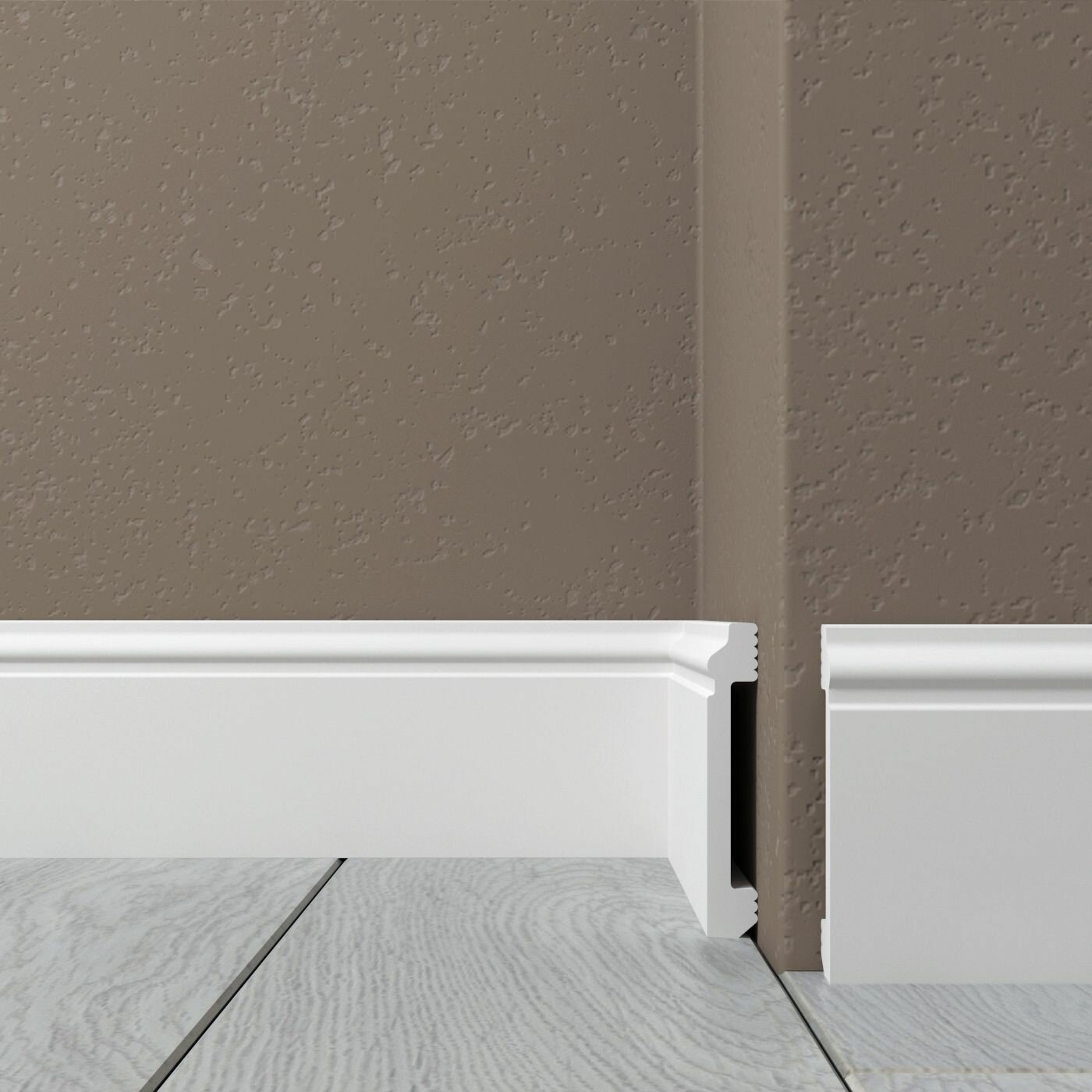Плинтус Де-Багет напольный ударопрочный Н80 80х13х2000 мм, белый ( 8 штук )