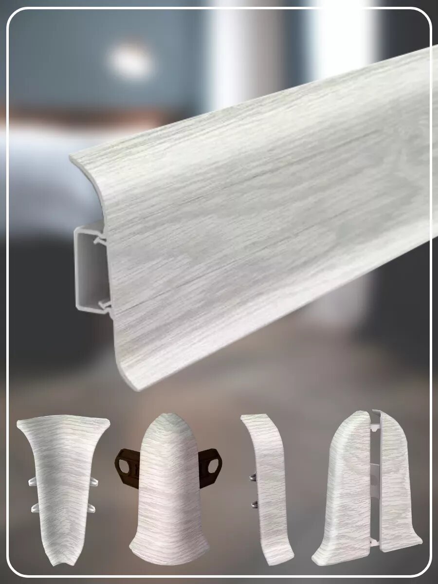 Плинтус Ideal, напольный, ПВХ, влагостойкий, клен серый, с фурнитурой