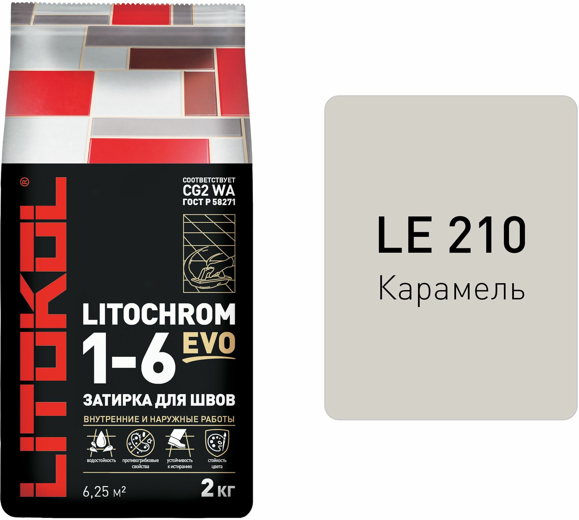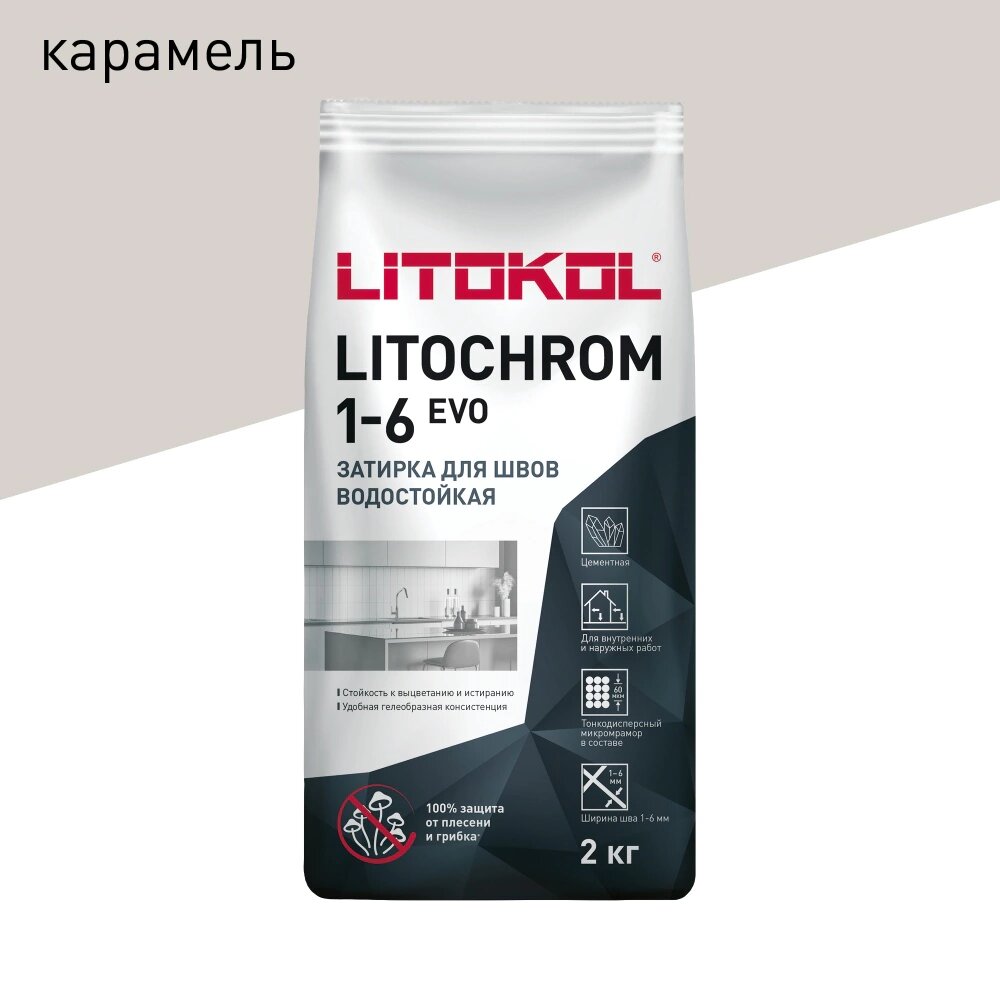 Купить Затирка цементная LITOKOL LITOCHROM 1-6 EVO цвет LE 210 карамель 2 кг