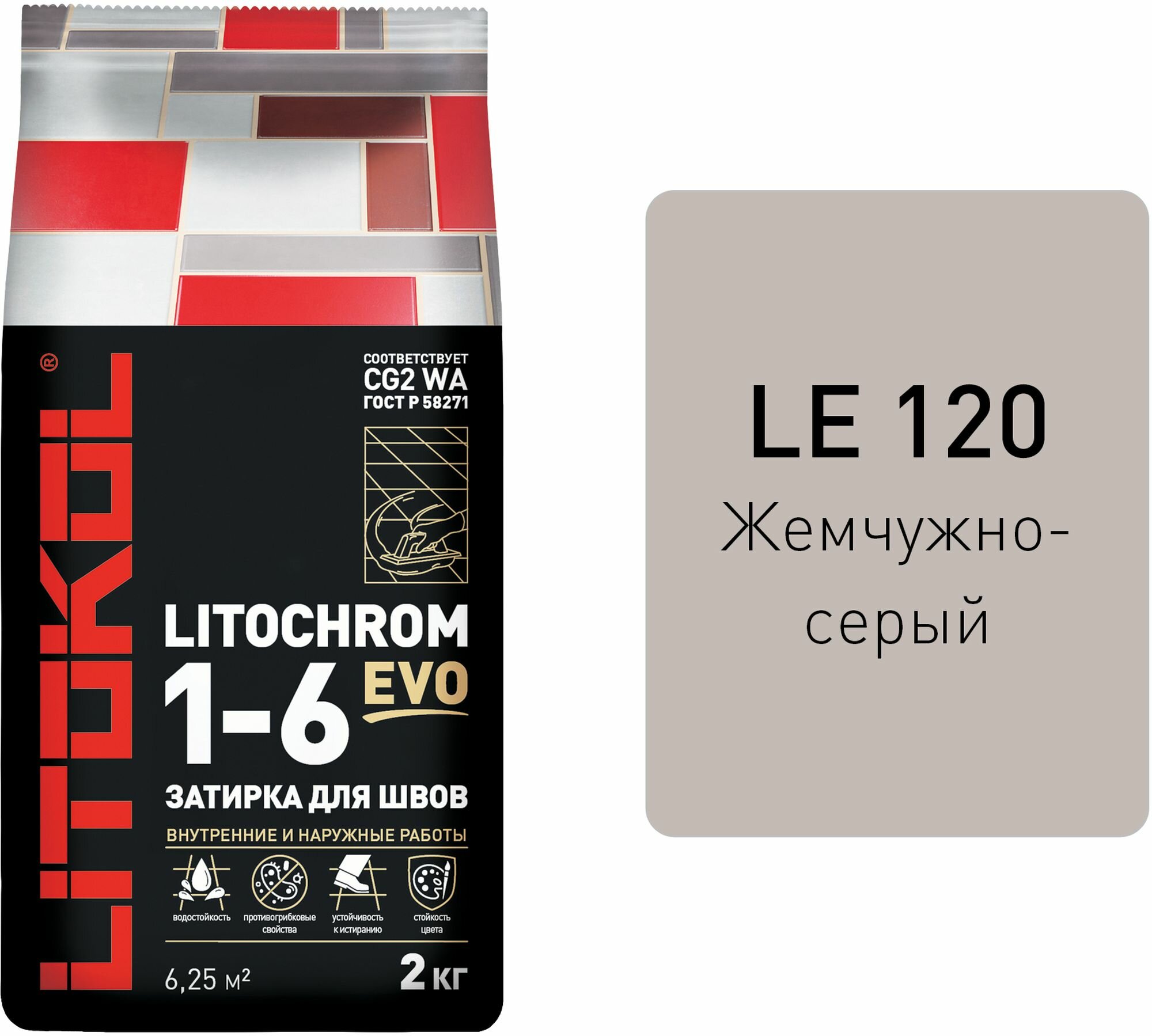 Купить Затирка цементная Litokol Litochrom 1-6 Evo цвет LE 120 жемчужно-серый 2 кг
