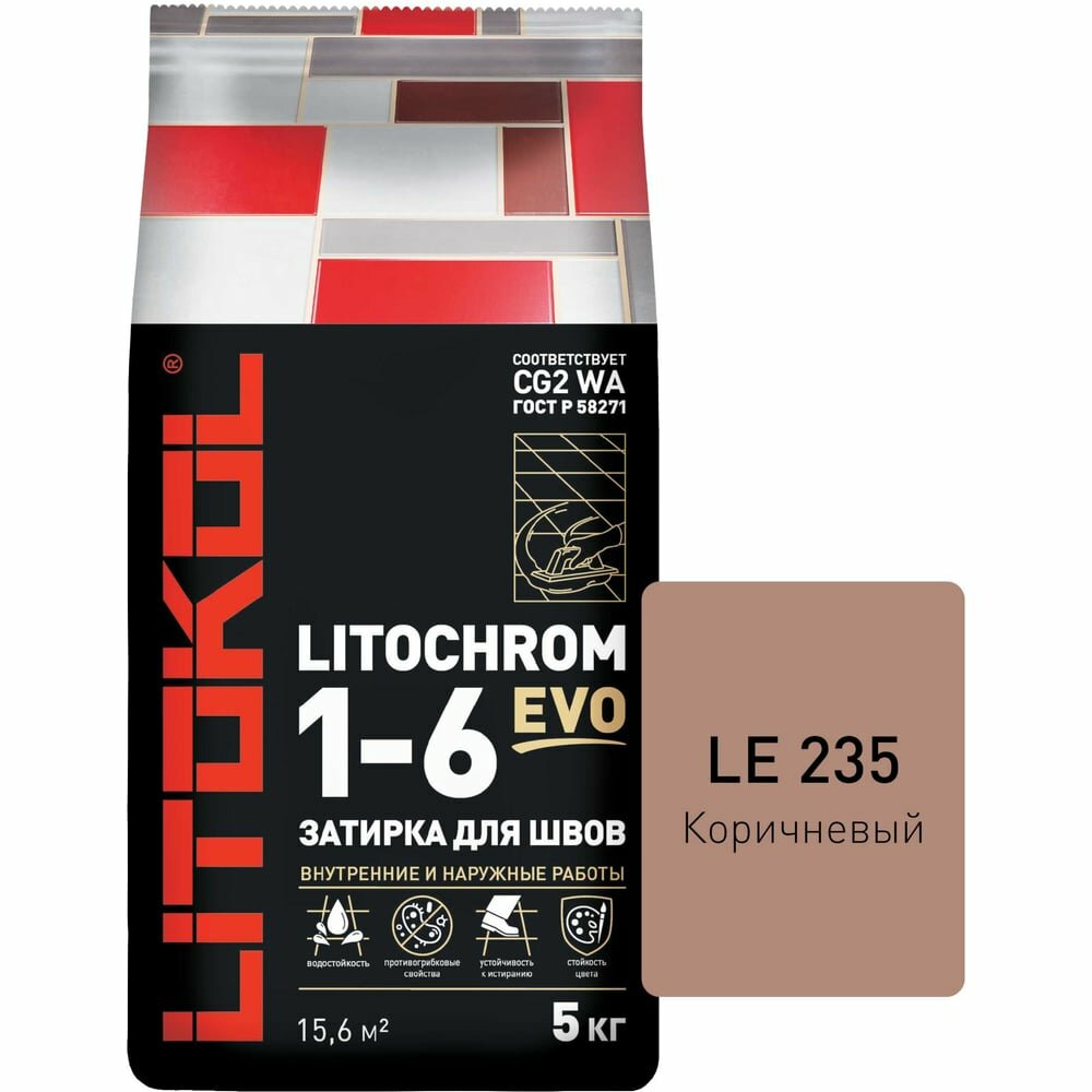 Цементная затирка Литокол LITOKOL LITOCHROM 1-6 EVO LE.235 Коричневый, 2 кг