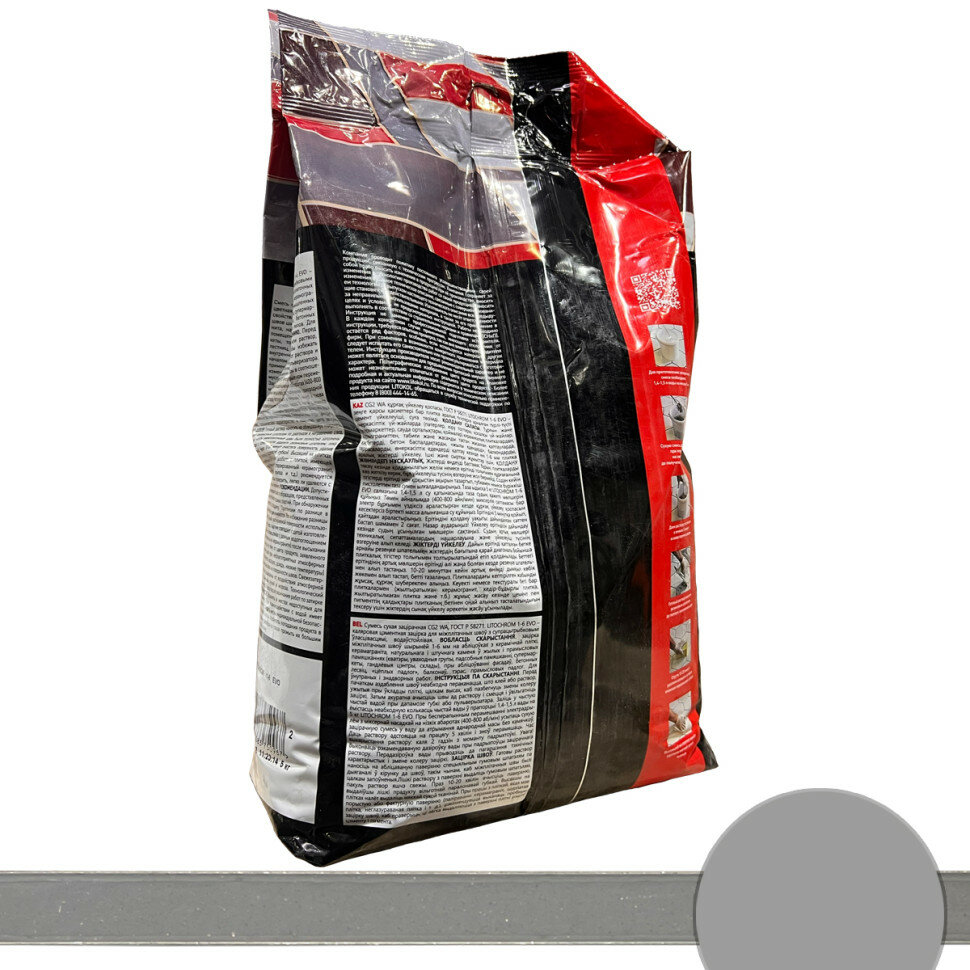 Затирка LITOCHROM 1-6 EVO с противогрибковыми свойствами, LE.130, серый, 2 кг