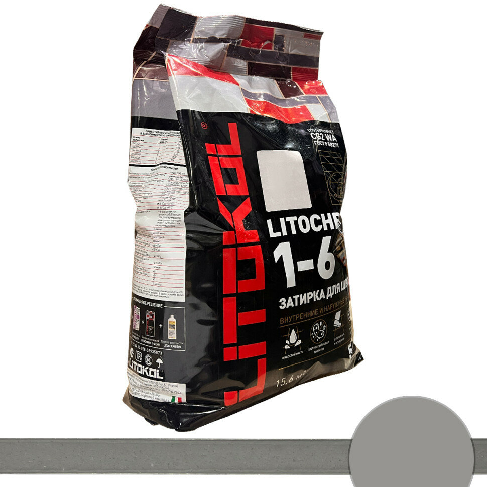 Затирочная Смесь Litokol Litochrom 1-6 Evo 5кг LE.125 Дымчатый Серый, Цементная для Затирки Швов Плитки от 1 до 6 мм / Литокол Литохром Эво.