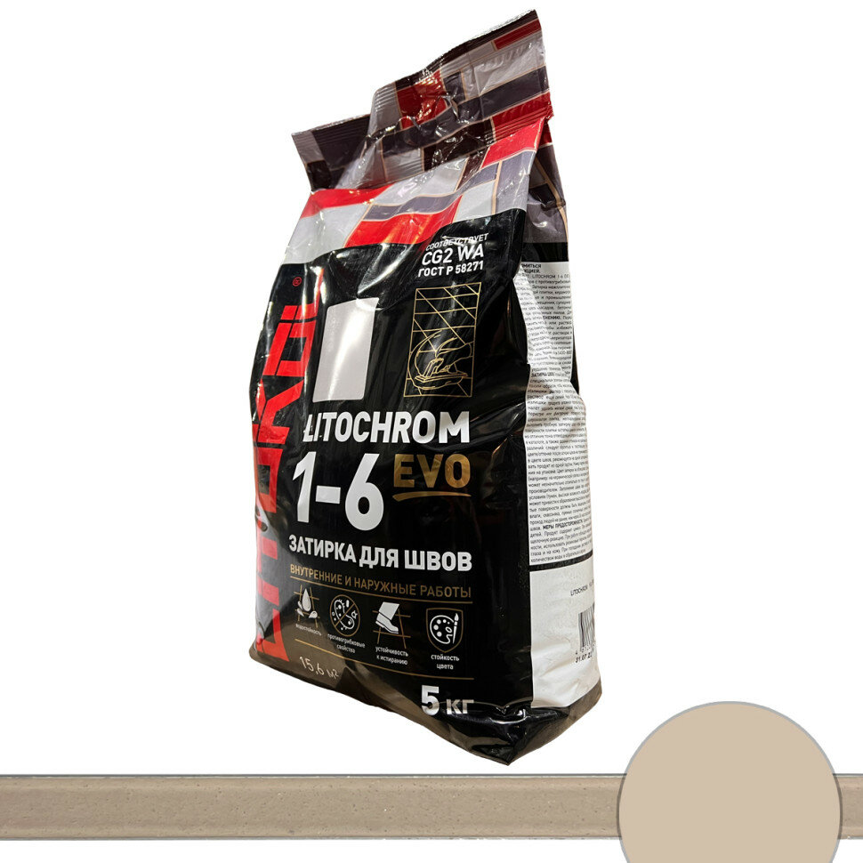 Купить Затирка для плитки Litokol Litochrom 1-6 EVO LE.225 бежевая 5 кг
