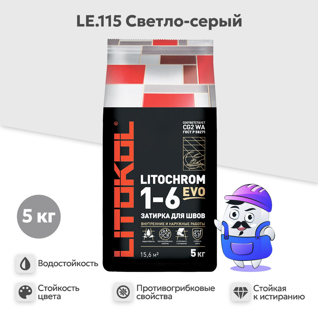Затирка для плитки Litokol Litochrom 1-6 EVO LE.115 светло-серая 5 кг