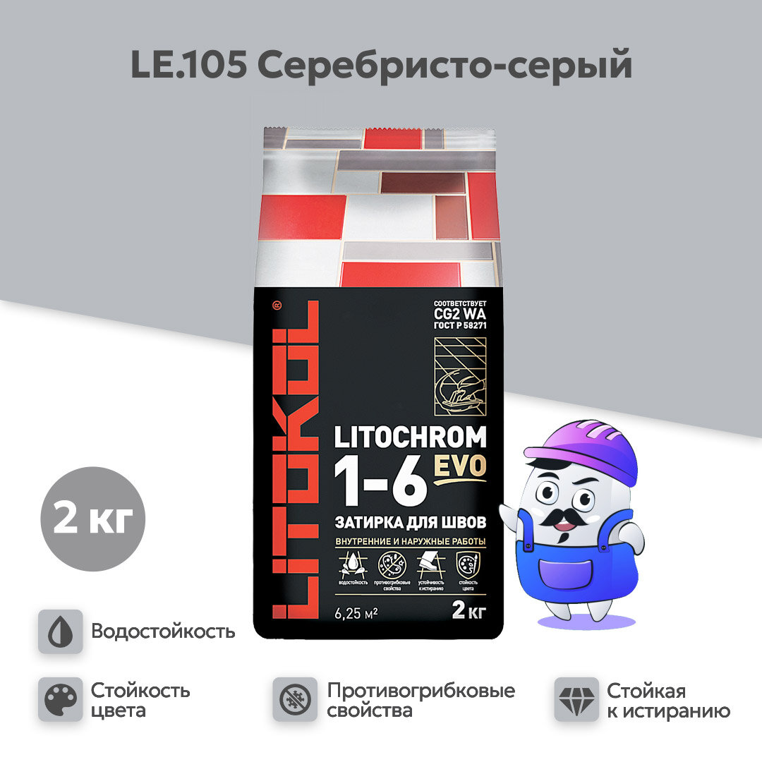 Купить затирка для швов LITOKOL Litochrom 1-6 EVO LE 105 2 кг серебристо-серый, арт. L0500090002
