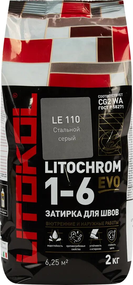 Купить Затирка цементная LITOKOL LITOCHROM 1-6 EVO цвет LE 110 стальной серый 2 кг