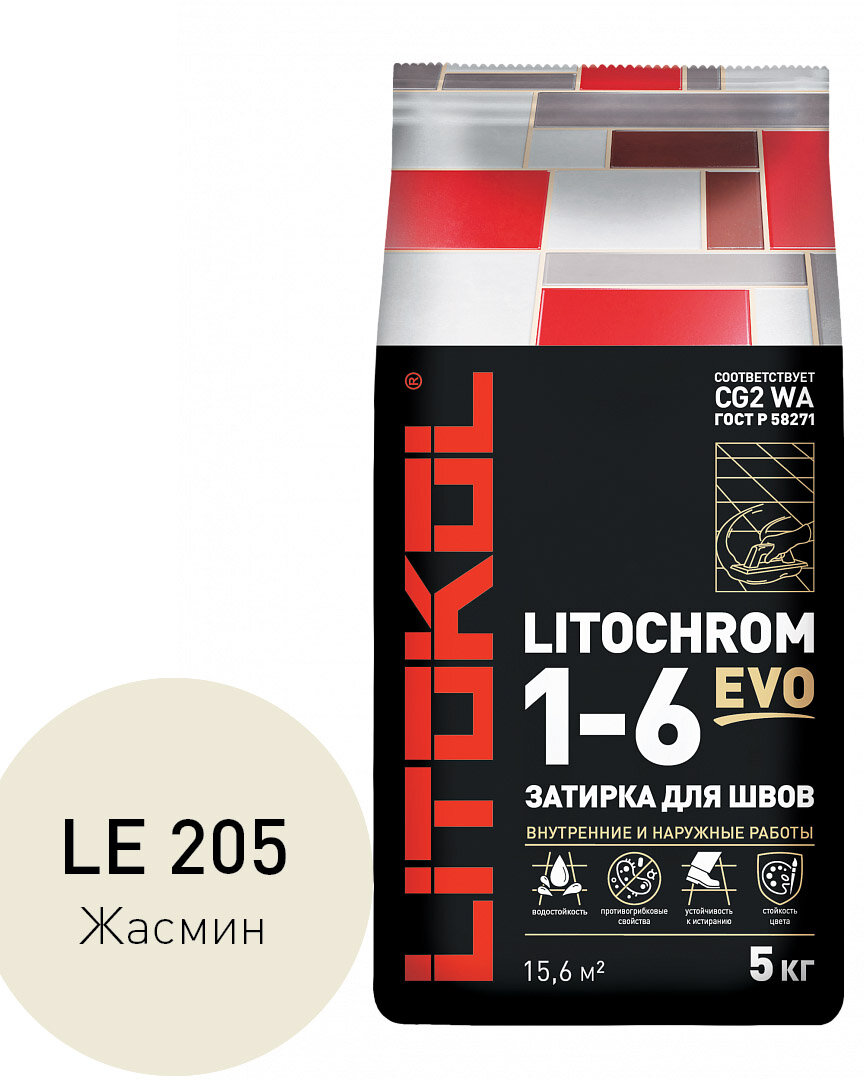 Купить Цементная затирка Литокол LITOKOL LITOCHROM 1-6 EVO LE.205 Жасмин, 5 кг