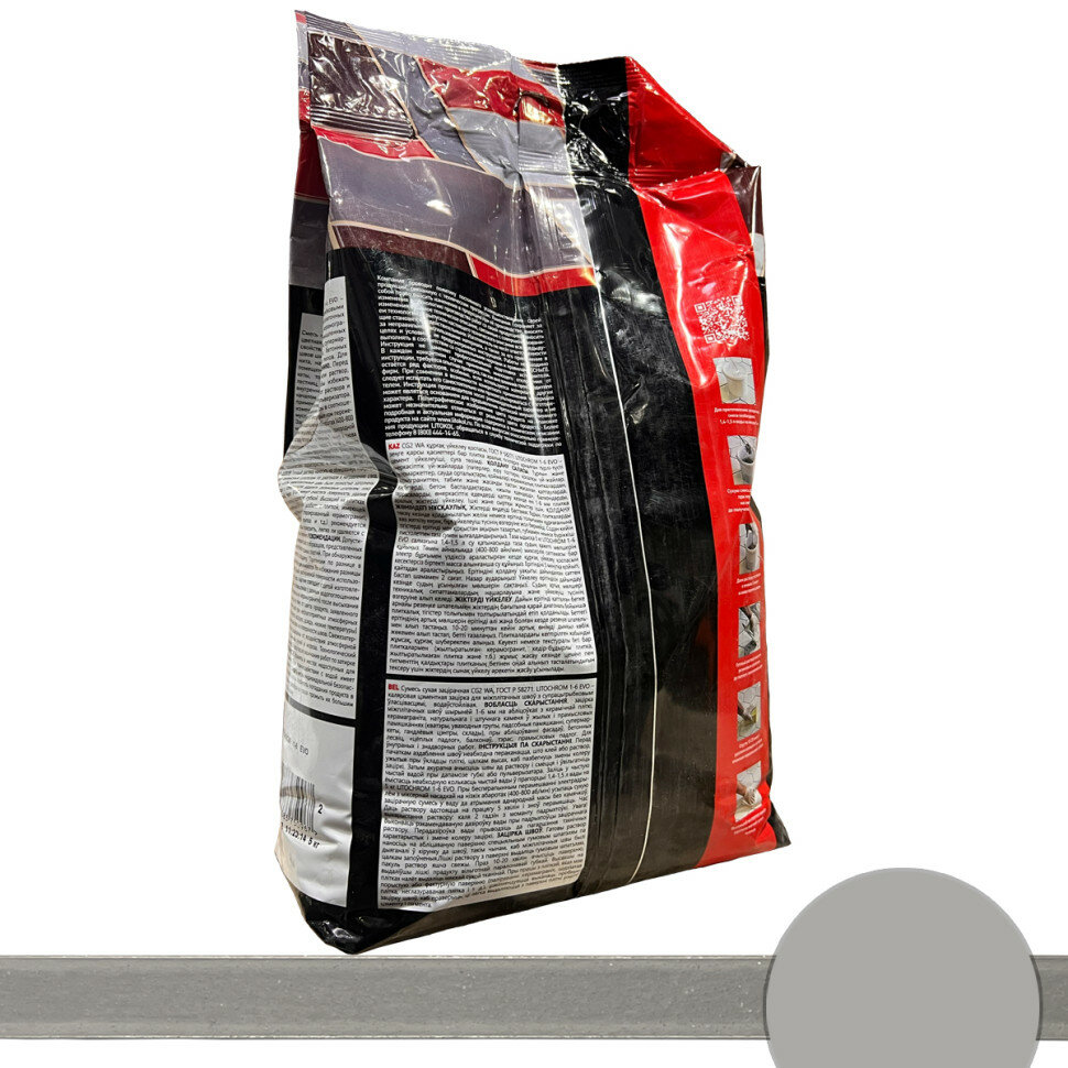 Затирочная Смесь Litokol Litochrom 1-6 Evo 5кг LE.125 Дымчатый Серый, Цементная для Затирки Швов Плитки от 1 до 6 мм / Литокол Литохром Эво.