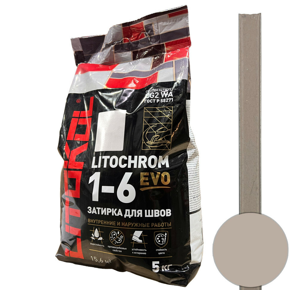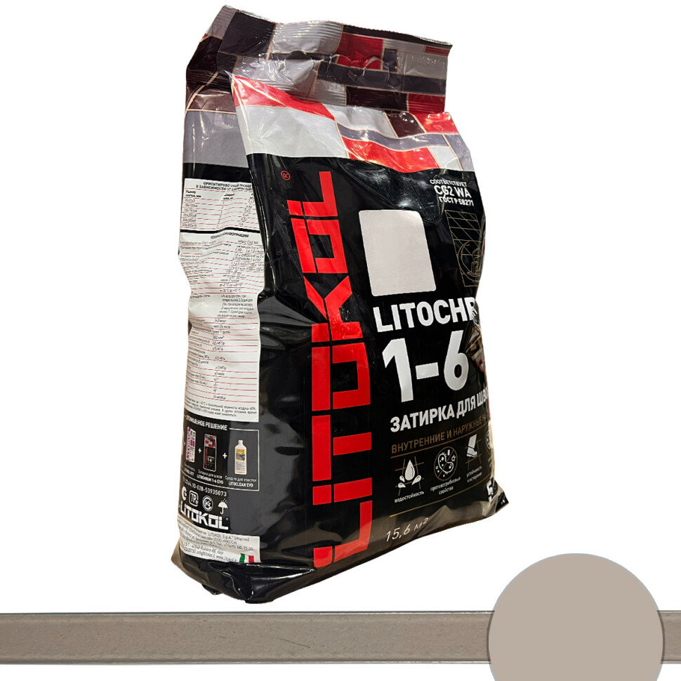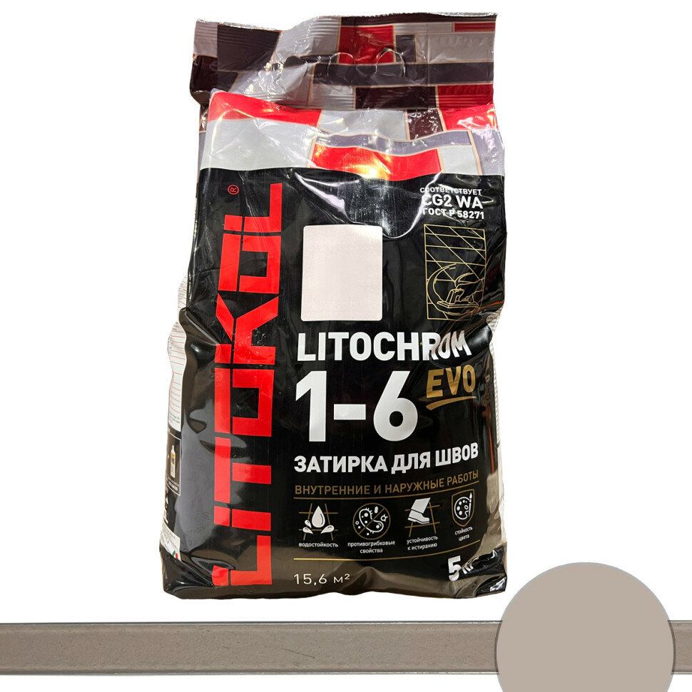 Затирочная Смесь Litokol Litochrom 1-6 Evo 5кг LE.120 Жемчужно-Серый, Цементная для Затирки Швов Плитки от 1 до 6 мм / Литокол Литохром Эво.