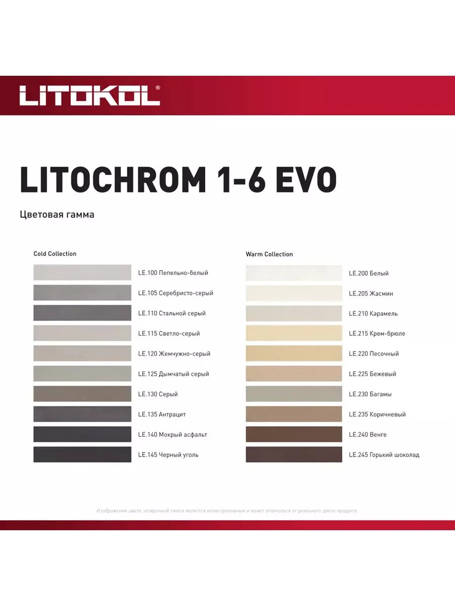 Затирка LITOKOL LITOCHROM 1-6 EVO LE.100 Пепельно-белый 5 кг