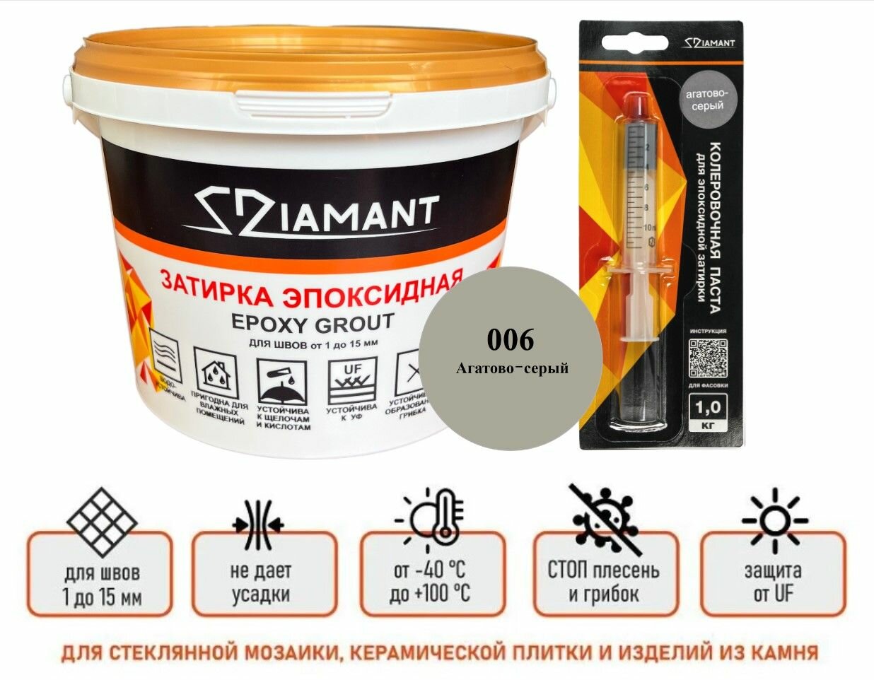 Купить Затирка эпоксидная Диамант NEW,агатово-серый 006, 1 кг, комплект
