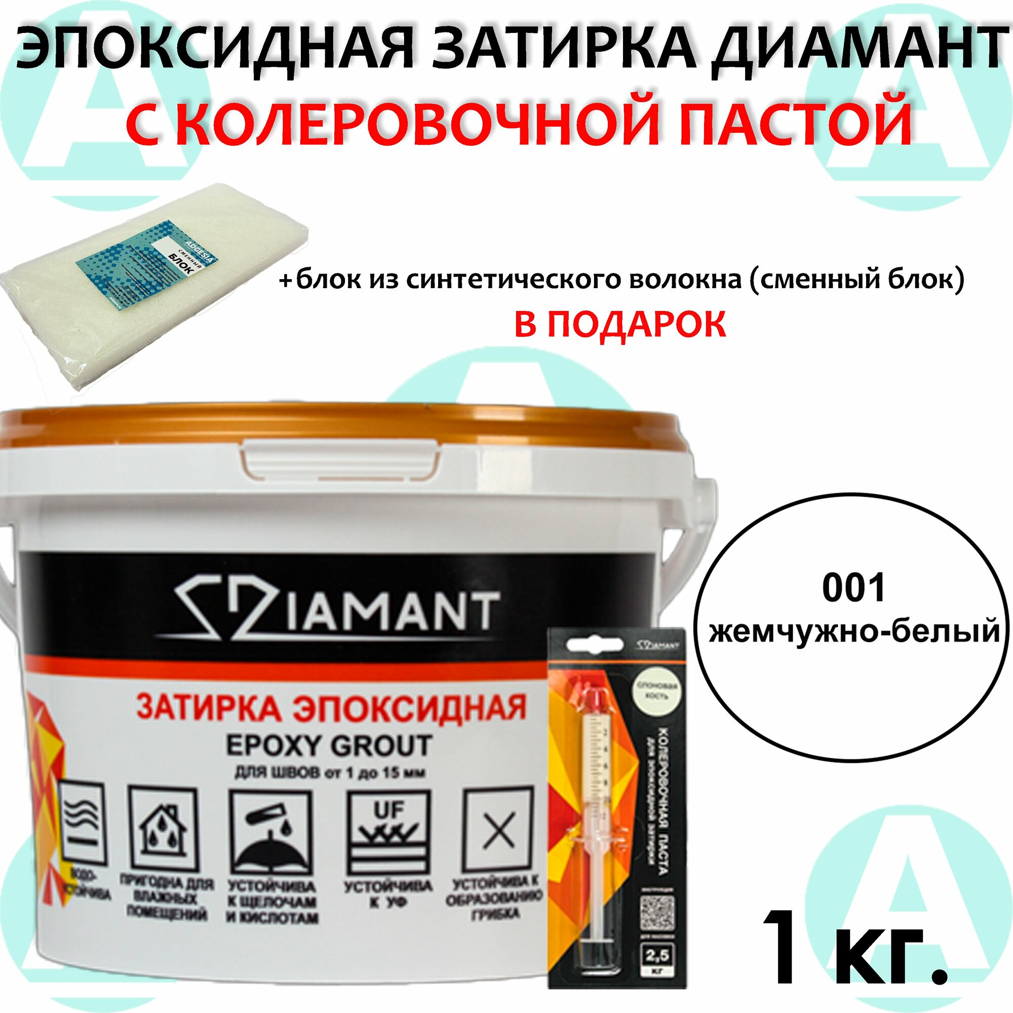 Купить Эпоксидная затирка Диамант 001 Жемчужно-белый 1 кг + сменный блок в подарок!