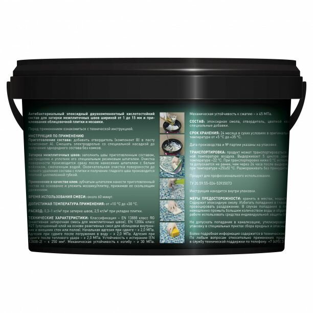 | Область применения | агломерированная плитка, бассейны, декоративный кирпич, для ванной комнаты, для внутренних работ, для герметизации угловых швов и стыков, для затирки швов, для кухни, для наружных работ, для пола, для производственных помещений, для стен, для теплого пола, искусственный камень, керамическая плитка, керамогранит, клинкерная плитка, мозаика, натуральный камень, террасы и балконы, тротуарная плитка, фасад |