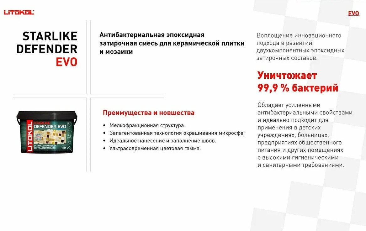Затирка для плитки эпоксидная LITOKOL STARLIKE DEFENDER EVO (старлайк дефендер ЭВО) S.102 Bianco Ghiaccio 1кг