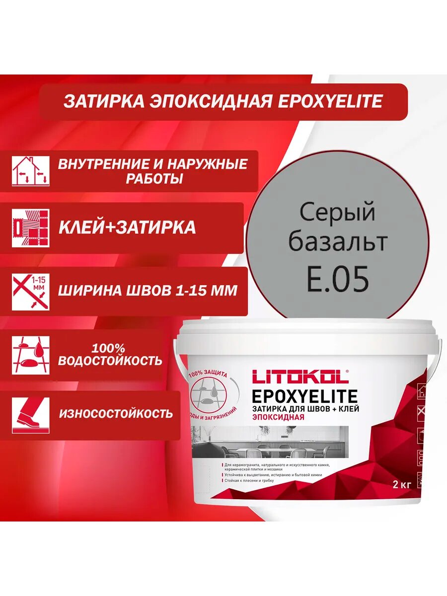 Купить Эпоксидная затирка LITOKOL EpoxyElite E.05 Серый базальт, 2 кг