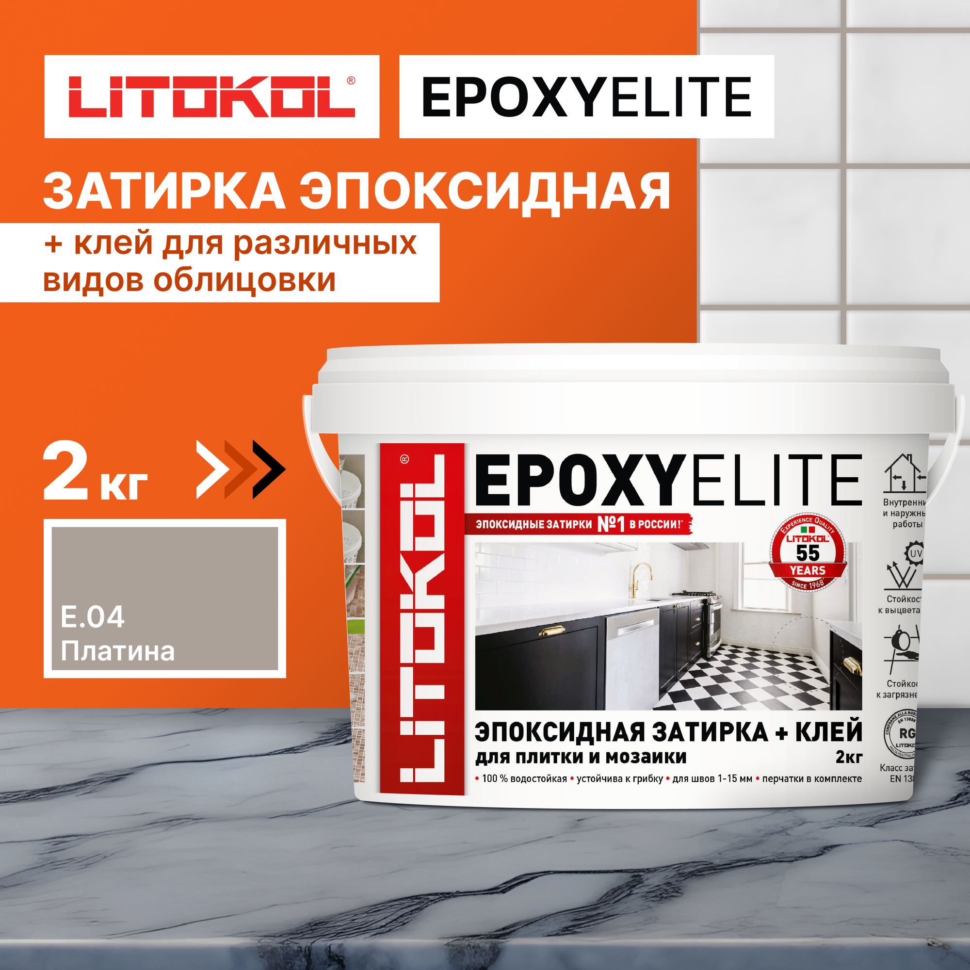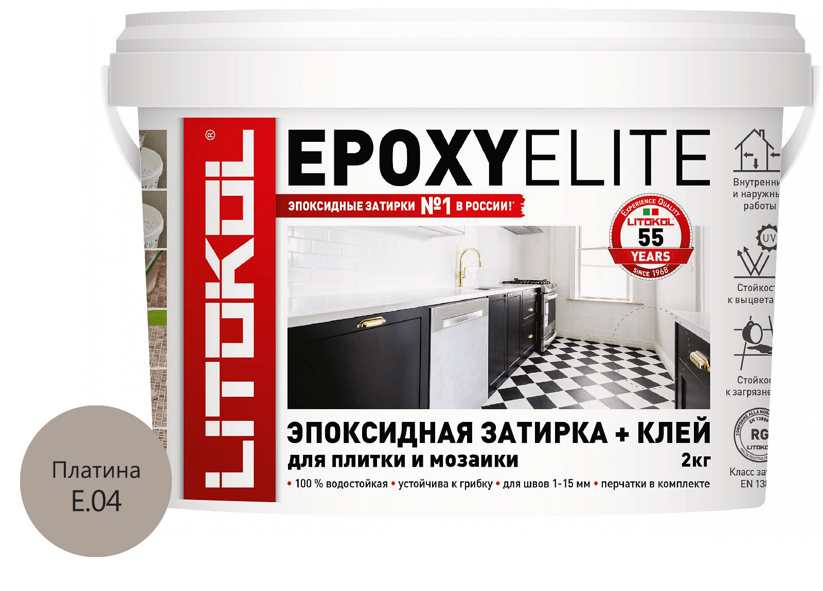 Эпоксидная затирка EpoxyElite (литокол ЭпоксиЭлит) E.04 (Платина ), 1кг