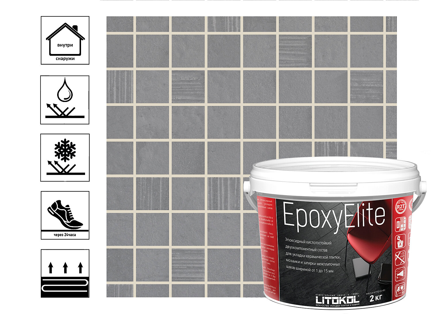 Затирка эпоксидная EpoxyElite для укладки и затирки мозаики и керамической плитки 2кг мокрый асфальт