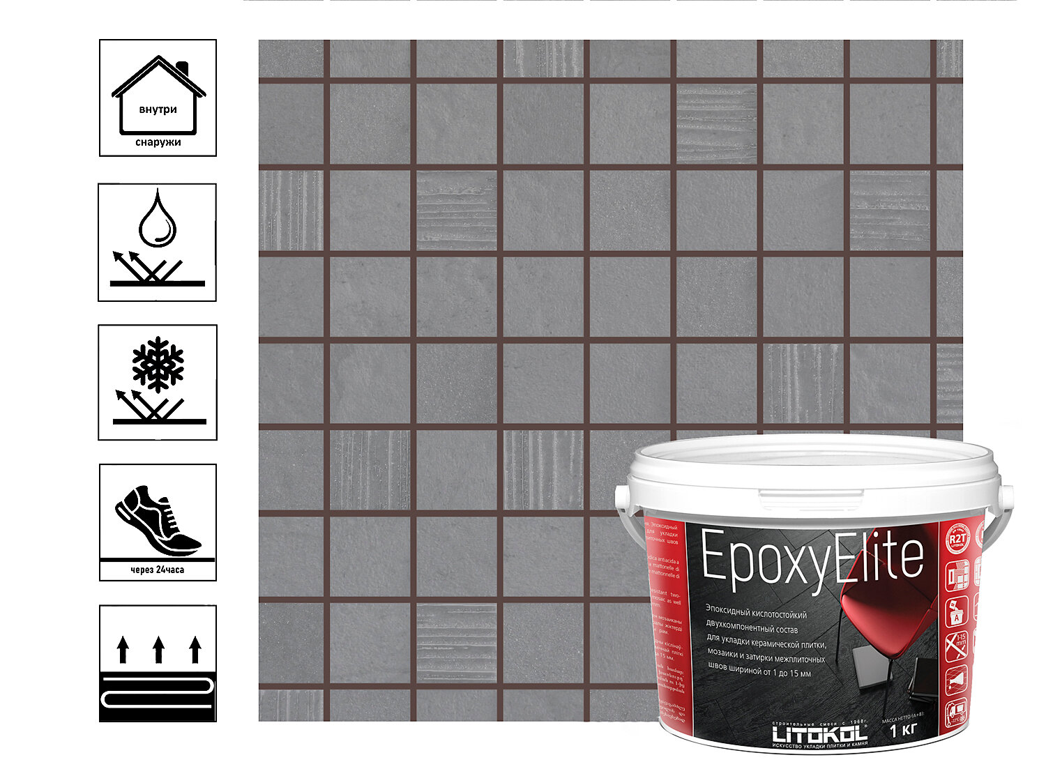 Эпоксидная затирка EpoxyElite (литокол ЭпоксиЭлит) E.07 (Черный кофе), 2кг