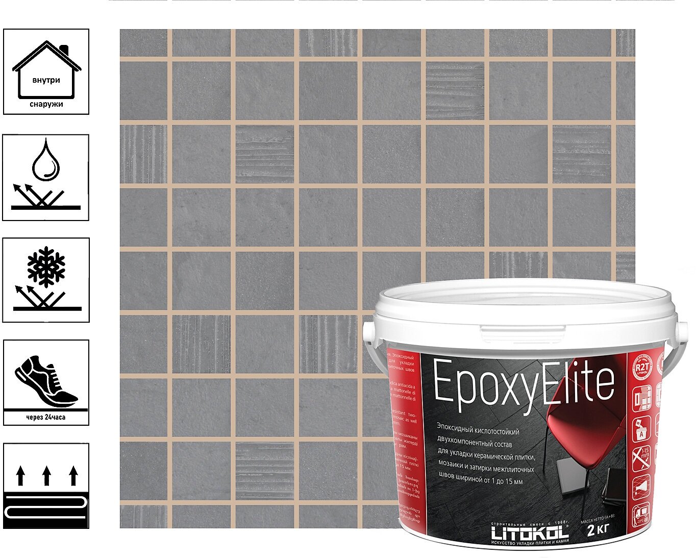 Затирка эпоксидная EpoxyElite для укладки и затирки мозаики и керамической плитки 2кг мокрый асфальт