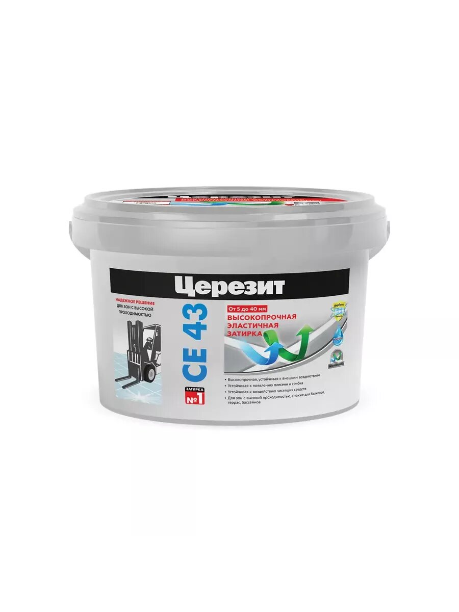 Церезит СЕ 43 затирка водоотталкивающая серая (2кг) / CERESIT CE-43 Super Strong эластичная затирка водоотталкивающая противогрибковая серая (2кг)
