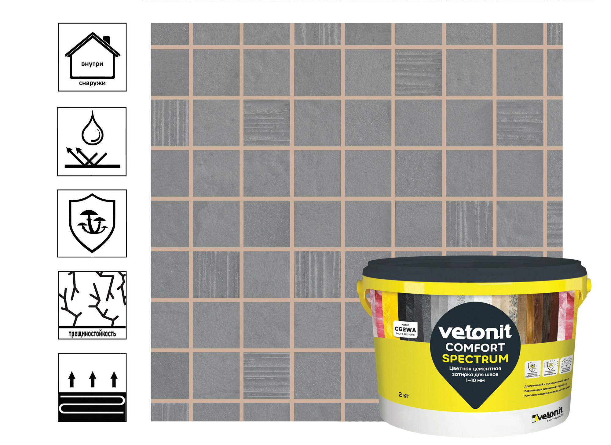 Цветная цементная затирка vetonit comfort spectrum 06 серый 2 кг