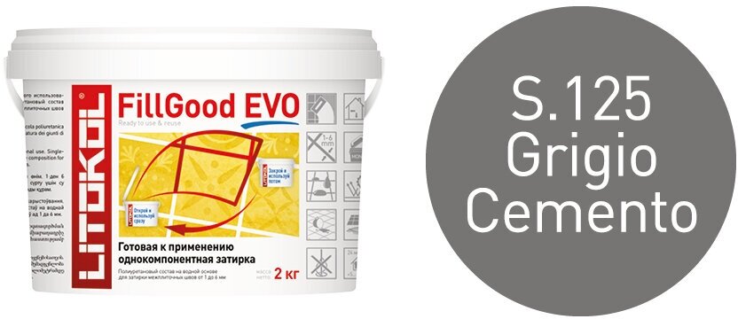 Полиуретановая готовая затирка LITOKOL Fillgood EVO F.125 GRIGIO CEMENTO, 2 кг