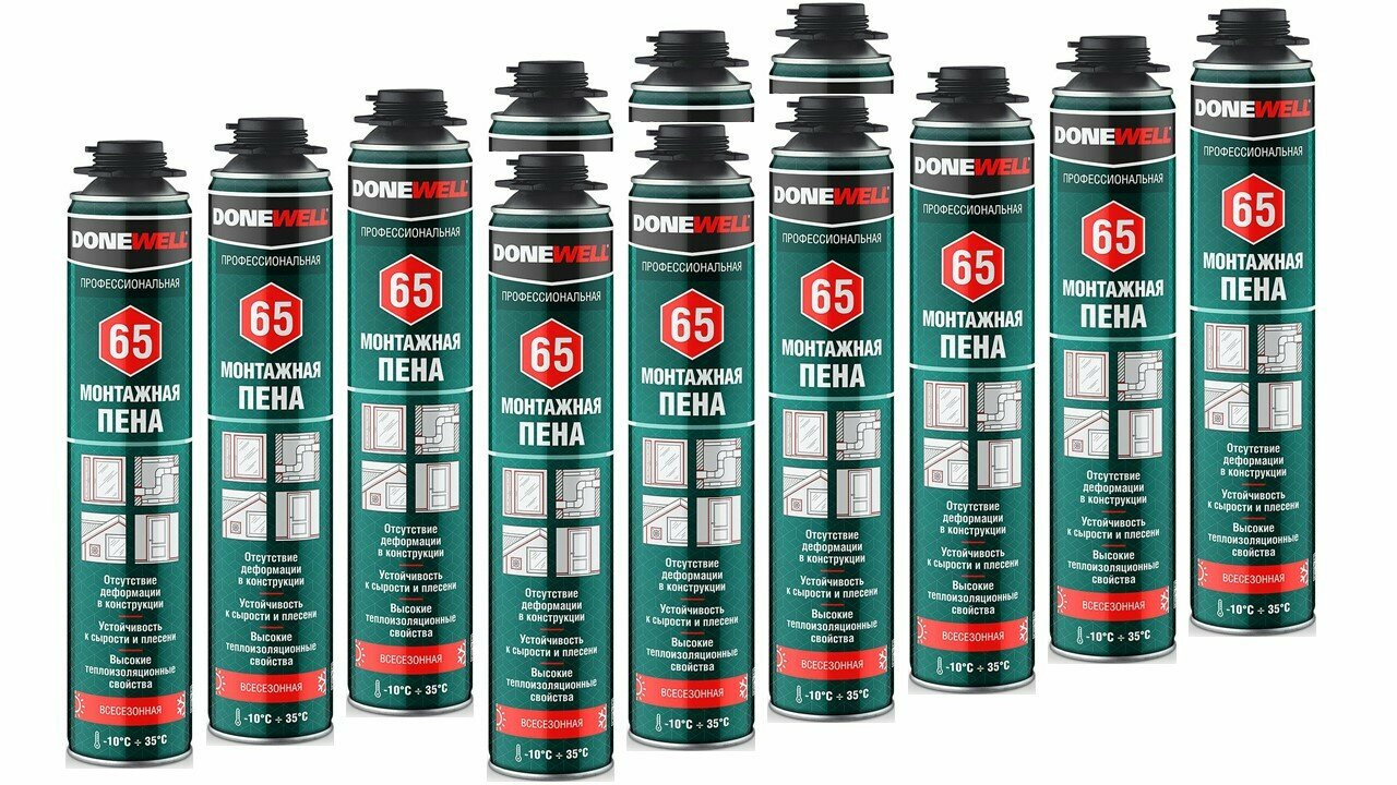 Комплект из 12 штук пена монтажная профессиональная всесезонная DONEWELL 65 1000 мл интересное: