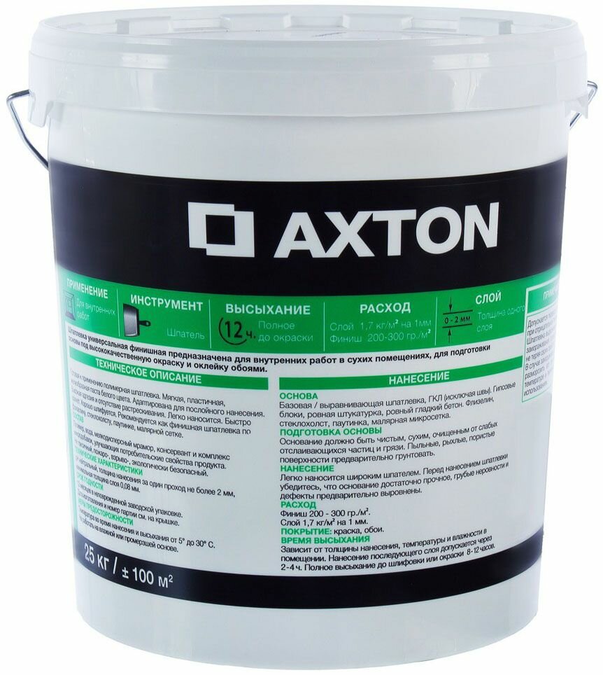 Акстон шпатлёвка полимерная суперфинишная (25кг) / AXTON шпаклёвка готовая полимерная суперфинишная (25кг) интересное: