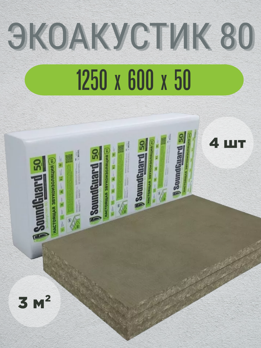 Плита звукопоглощающая минеральная SoundGuard ЭкоАкустик 80 (50мм) 3 м² интересное: