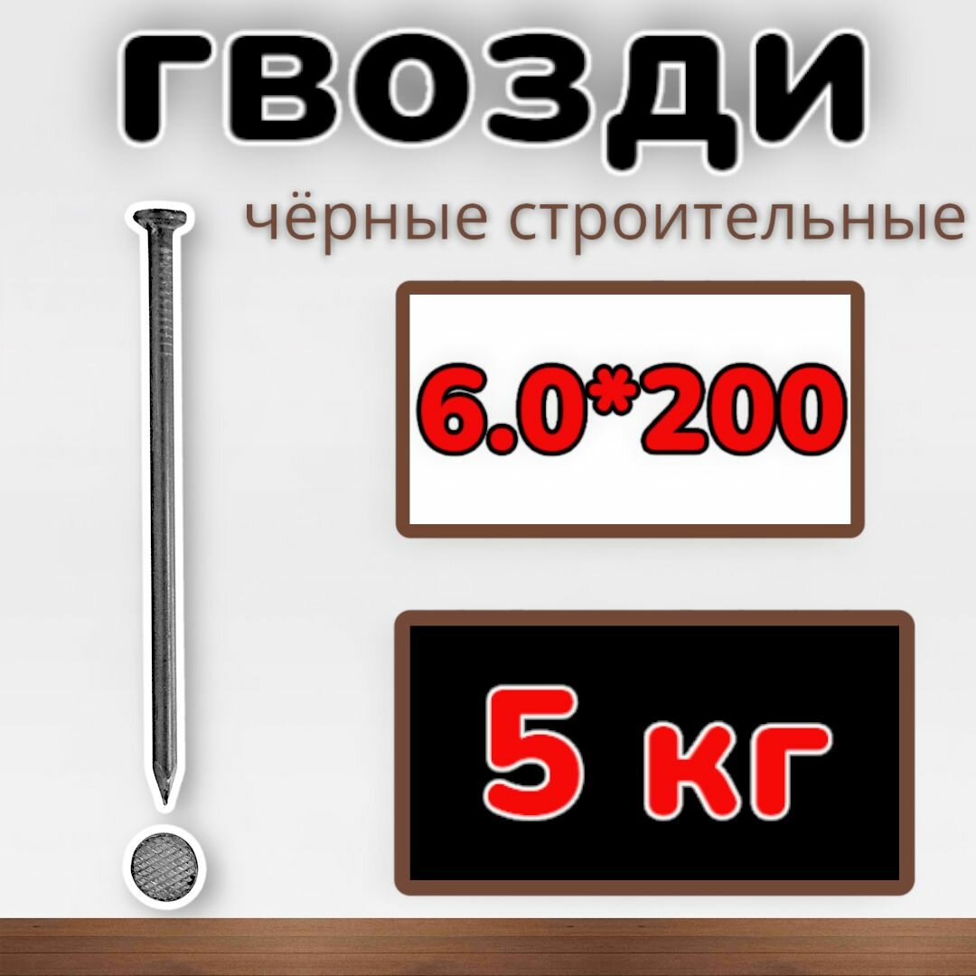 Купить Гвозди строительные черные 6.0х200 (упаковка1уп/5 кг) 200