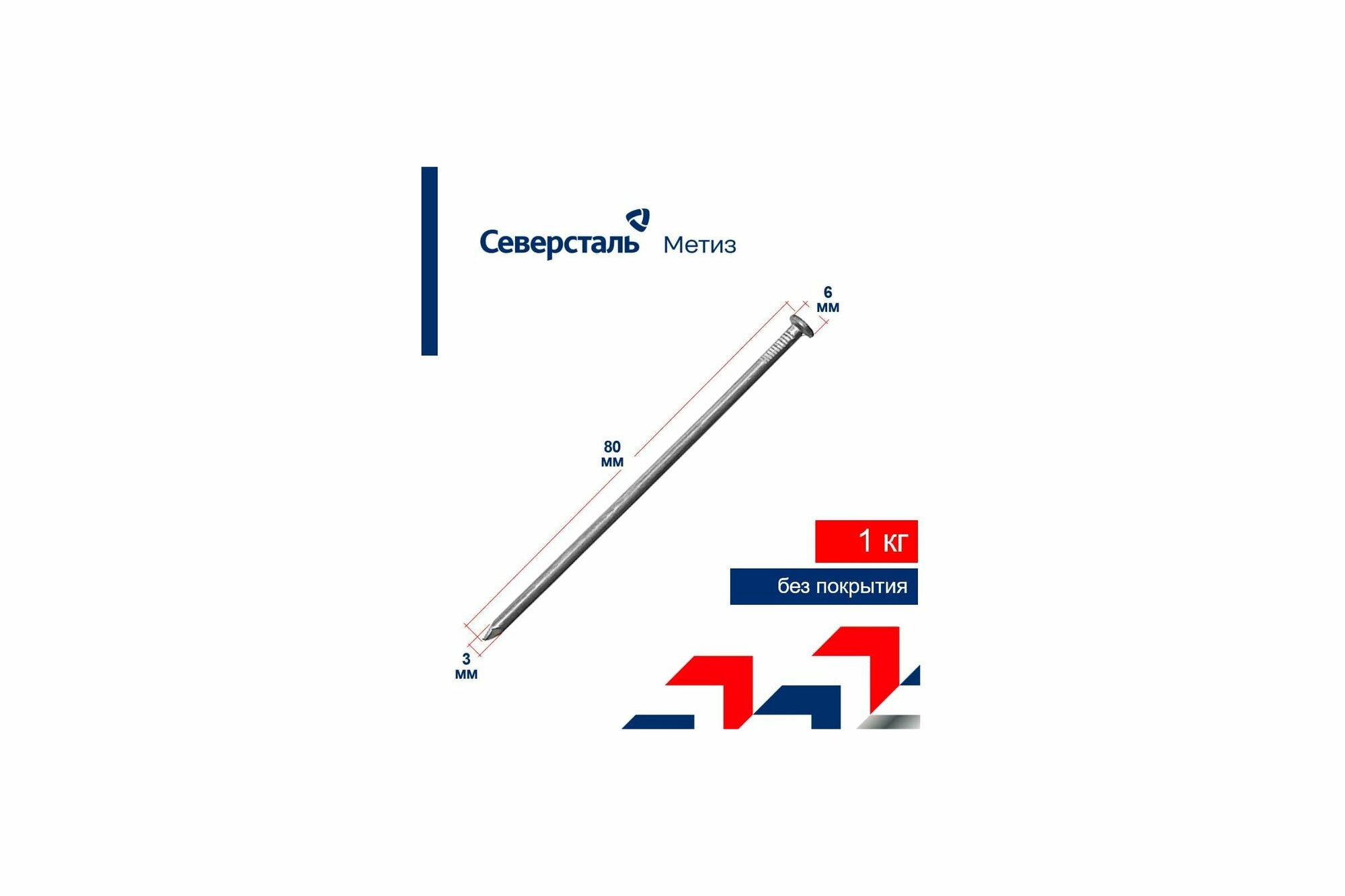 Строительные гвозди Северсталь-метиз ГОСТ 4028-63 3x80, 1 кг NCG402800300080-16