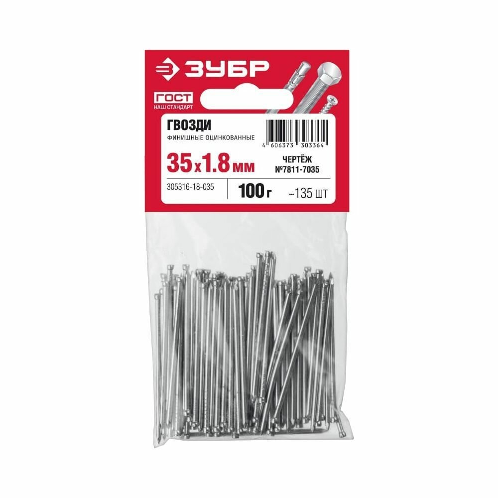 ЗУБР 35 х 1.8 мм, финишные гвозди, цинк, 1 кг (305311-18-035)