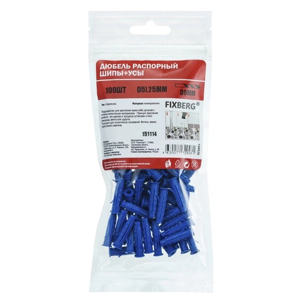 Ниже Вы можете прочитать отзывы на Дюбель распорный с шипами и усами FIXBERG 5х25 мм 100 шт, ознакомится с подробными характеристиками, посмотреть интересные обзоры и фотографии на Дюбель распорный с шипами и усами FIXBERG 5х25 мм 100 шт.
