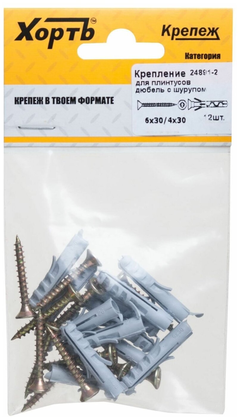 Крепление для плинтусов.Комплект: дюбель с шурупом 6х30/4х30 ( фасовка 12 шт) XВАТ 24891-2 интересное: