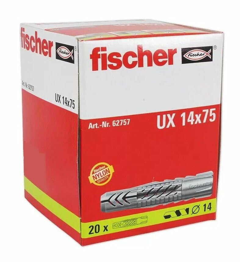 Универсальный дюбель FISCHER UX 14x75 мм без кромки (62757) нейлон 20 шт.