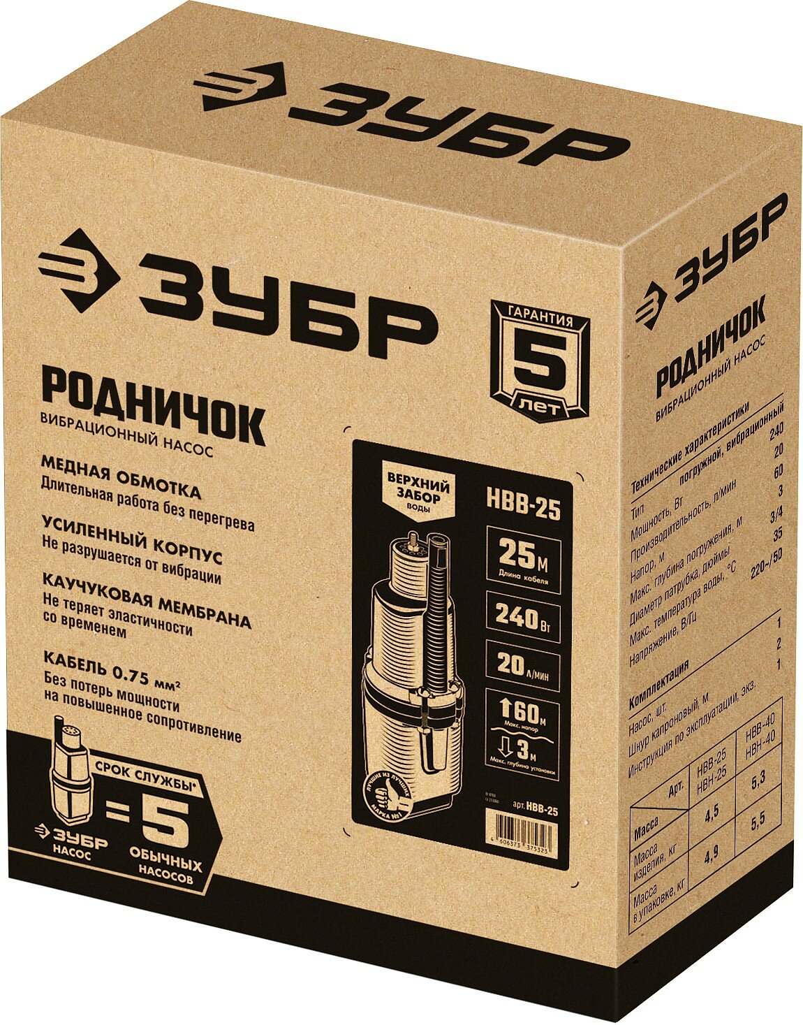 ЗУБР Родничок-В, 25 м, вибрационный насос с верхним забором (НВВ-25) интересное: