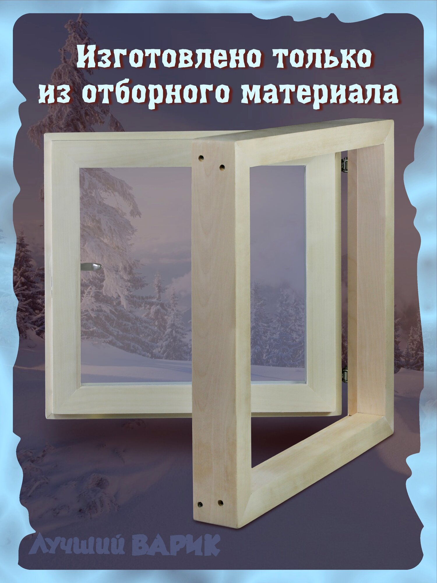 Окно банное "лучшийварик", дерево, 50 см x 50 см, квадратное