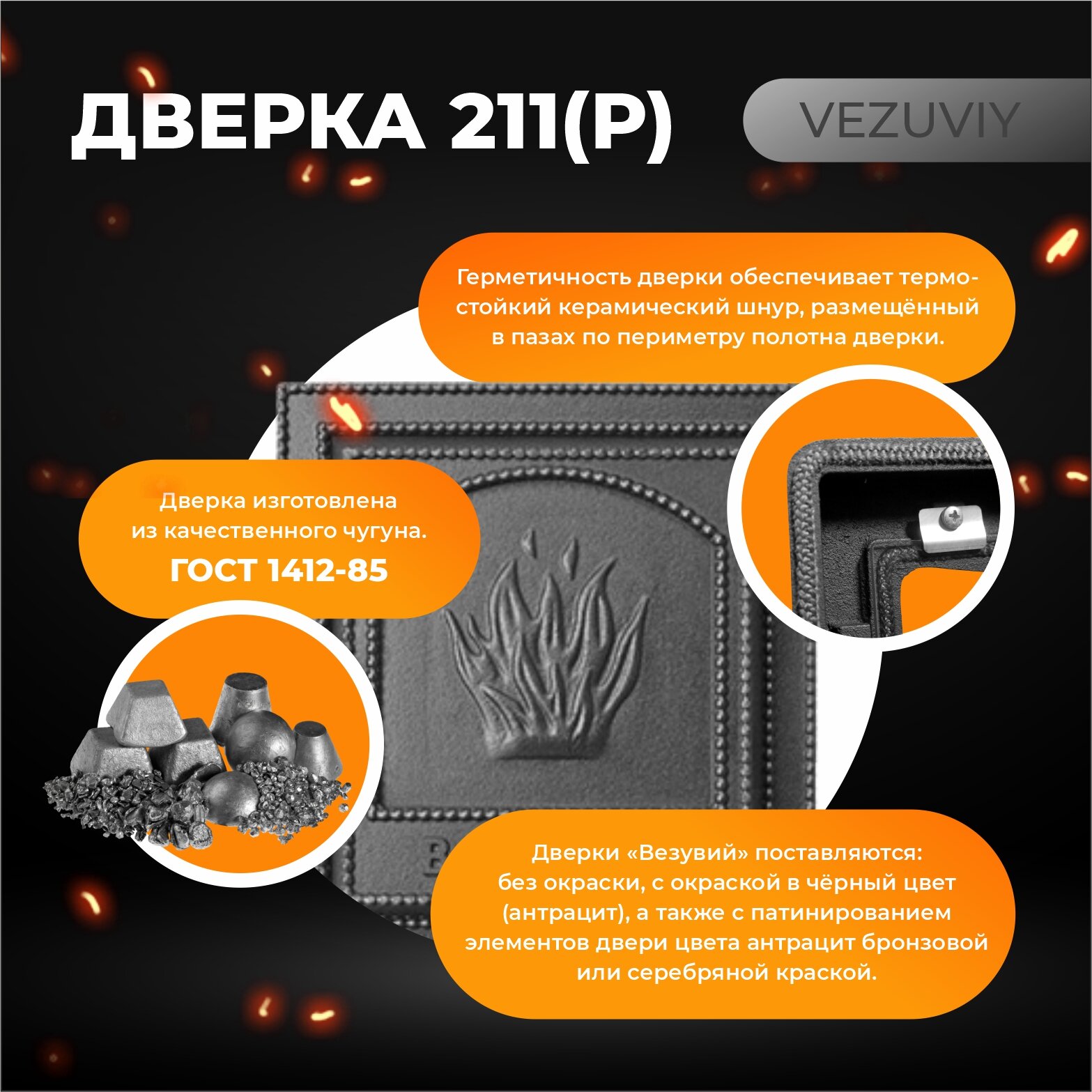 Дверка везувий каминная 211 (Антрацит) интересное: