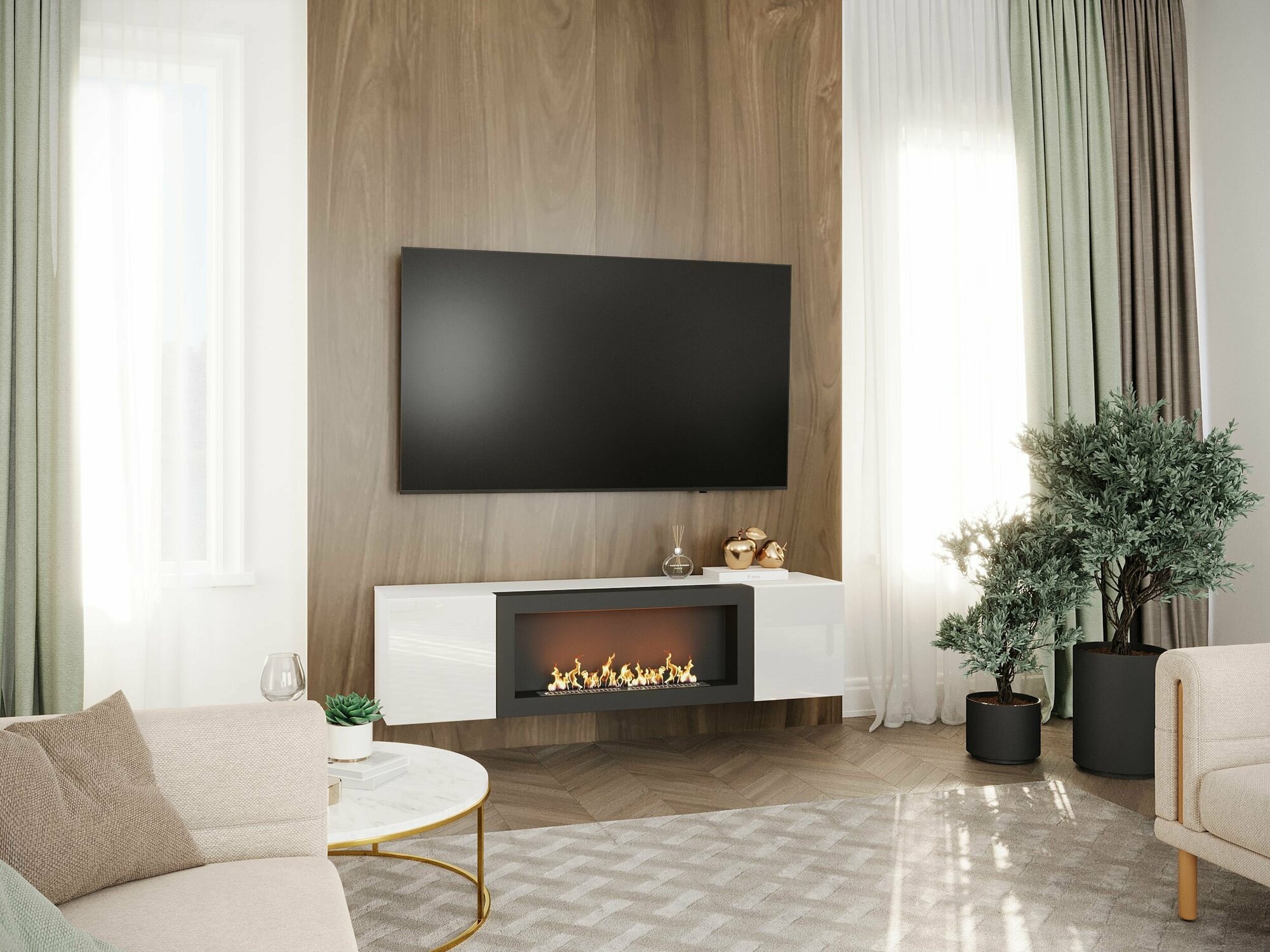 Тумба подвесная, тумба под ТВ, тумба биокамин POINT TYPE-28, Белый глянец, (ШхВхГ) 160х40х40 см интересное: