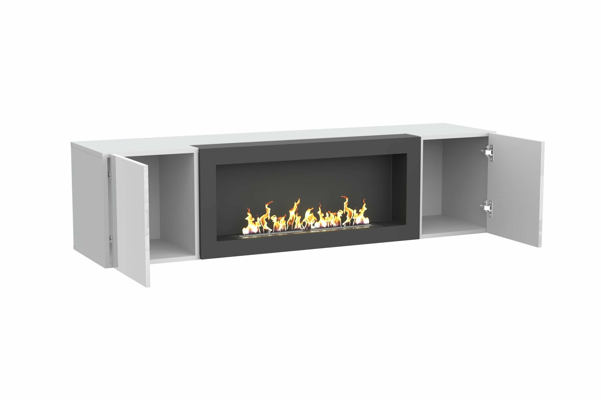 Купить Тумба подвесная, тумба под ТВ, тумба биокамин POINT TYPE-28, Белый глянец, (ШхВхГ) 160х40х40 см