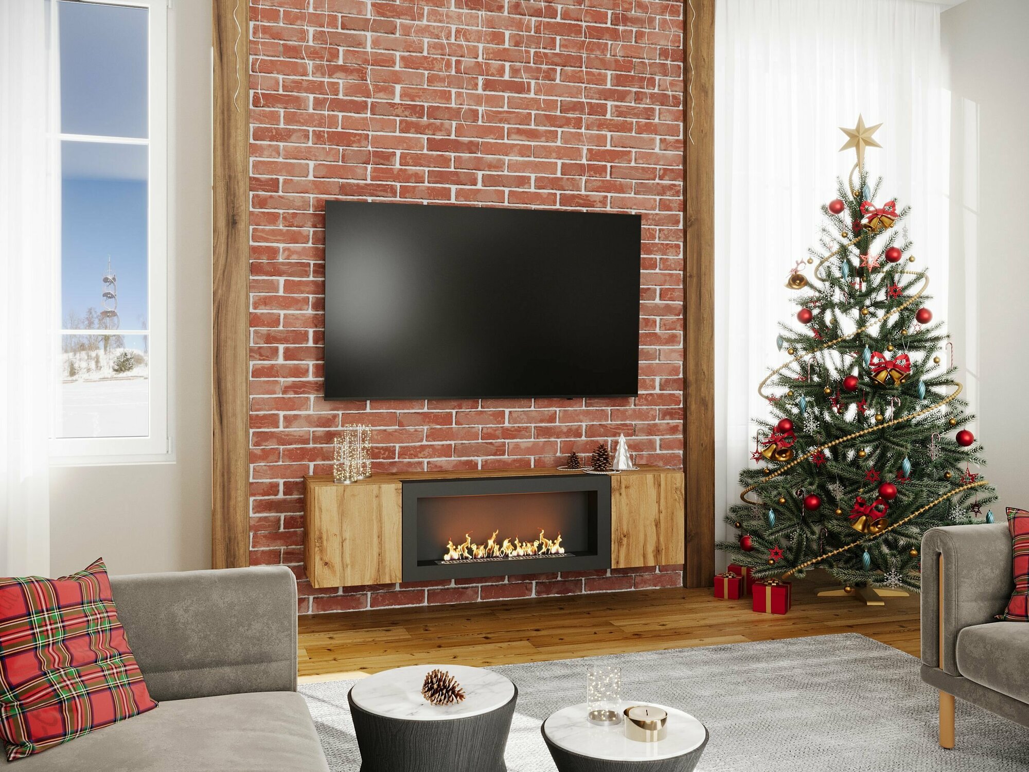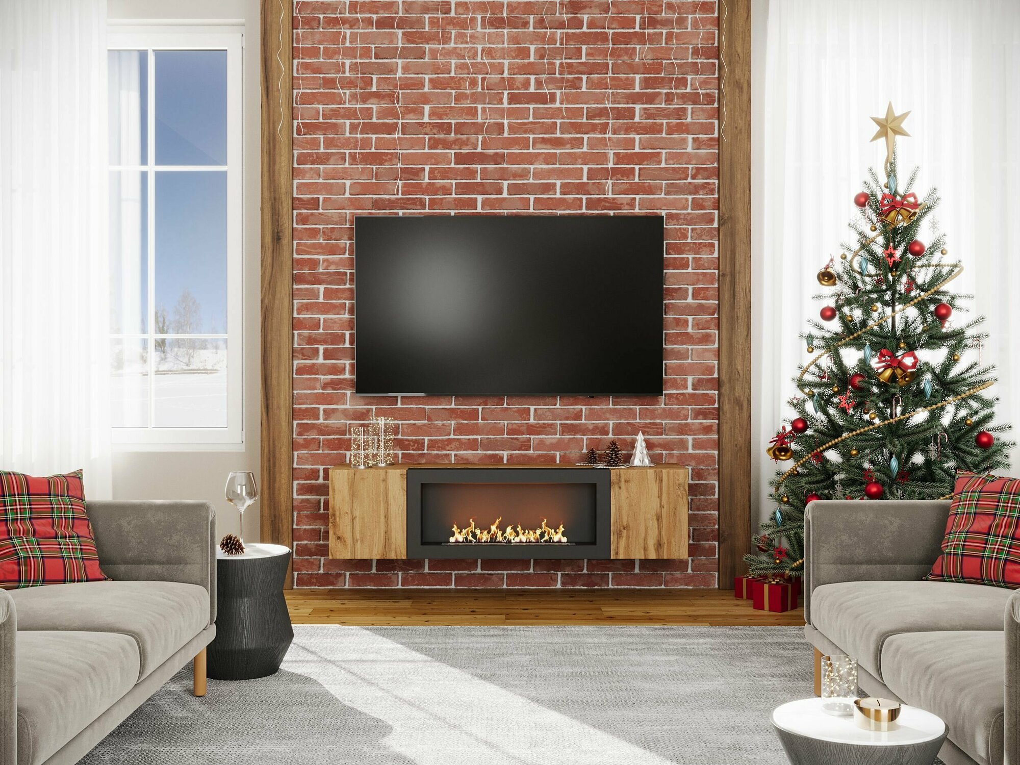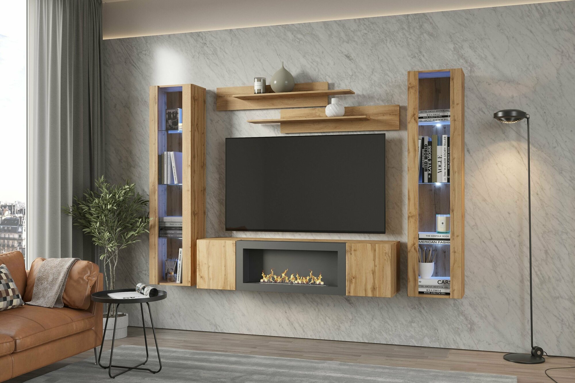 Купить Тумба подвесная, тумба под ТВ, тумба биокамин POINT TYPE-28, Дуб Вотан, (ШхВхГ) 160х40х40 см