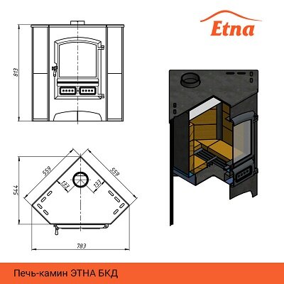 Камин этна (БКД) угловой "Антрацит" Ø 115мм диаметр дымохода: 115 мм интересное: