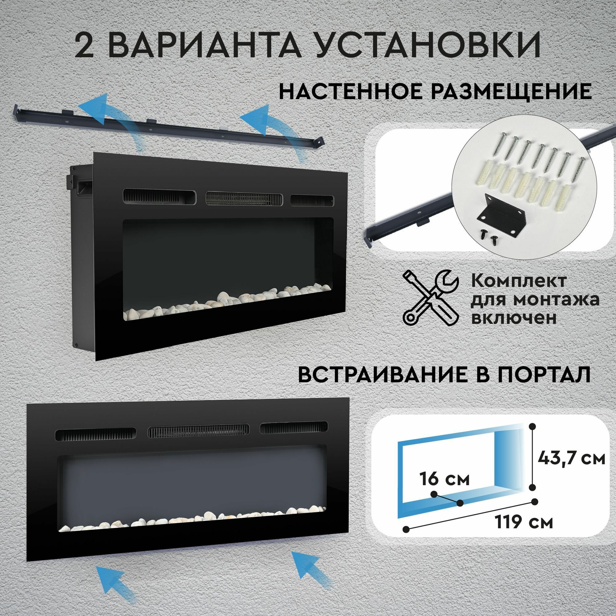 Купить PLANTA Электрокамин PFP-INS050 MULTICOLOR, настенный/встраиваемый электрический камин, 50", 3 режима, 2 вида топлива, 9 цветов пламени
