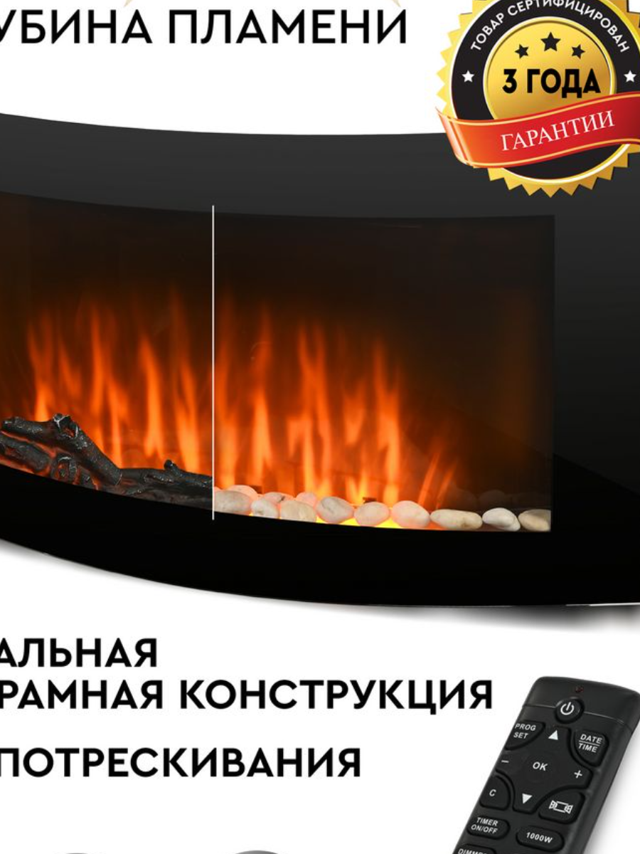 PLANTA Электрокамин PFP-WM090CURV, настенный, панорамный корпус интересное: