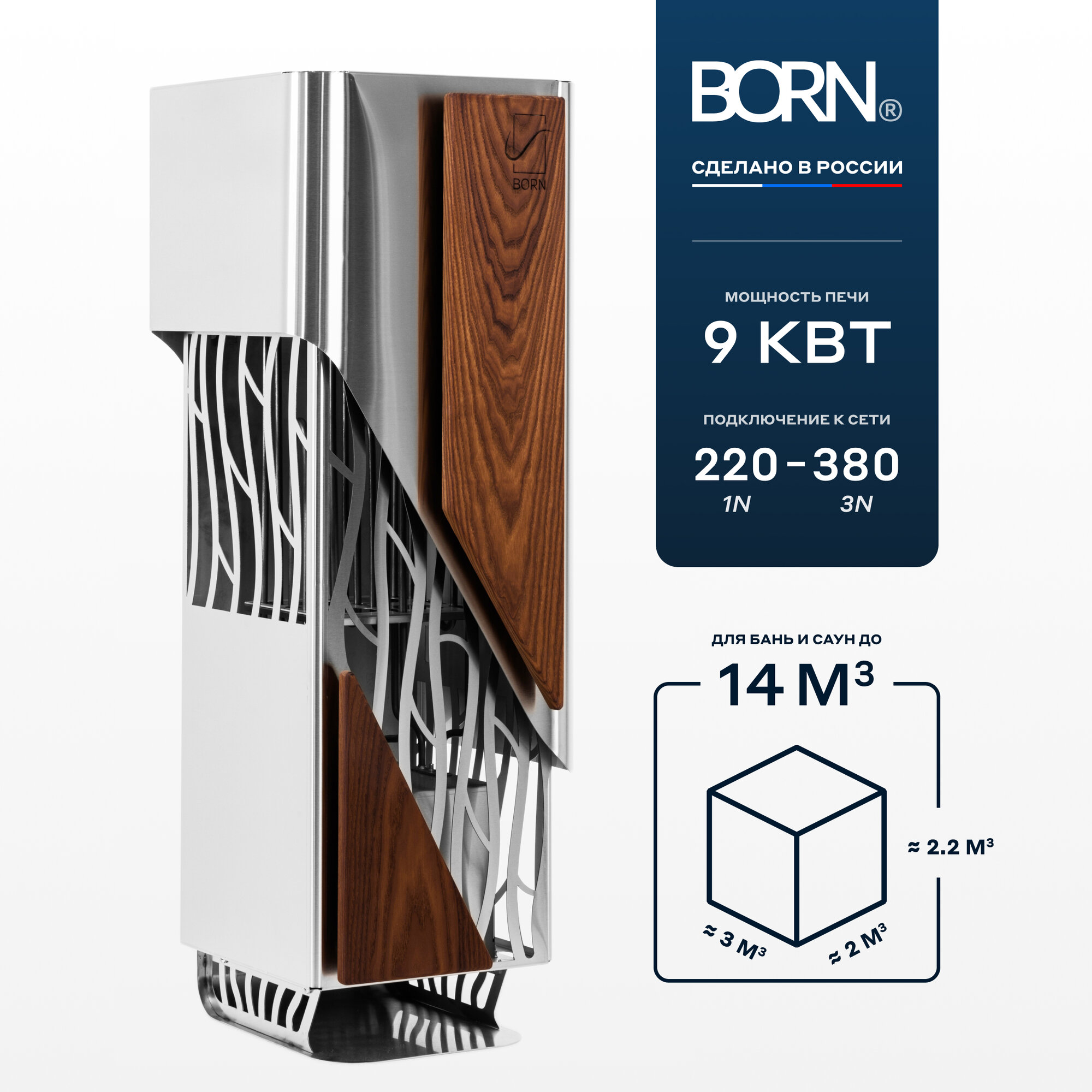 Электрокаменка для сауны и бани BORN Air 90E, мощность 9 кВт, матовая нержавеющая сталь