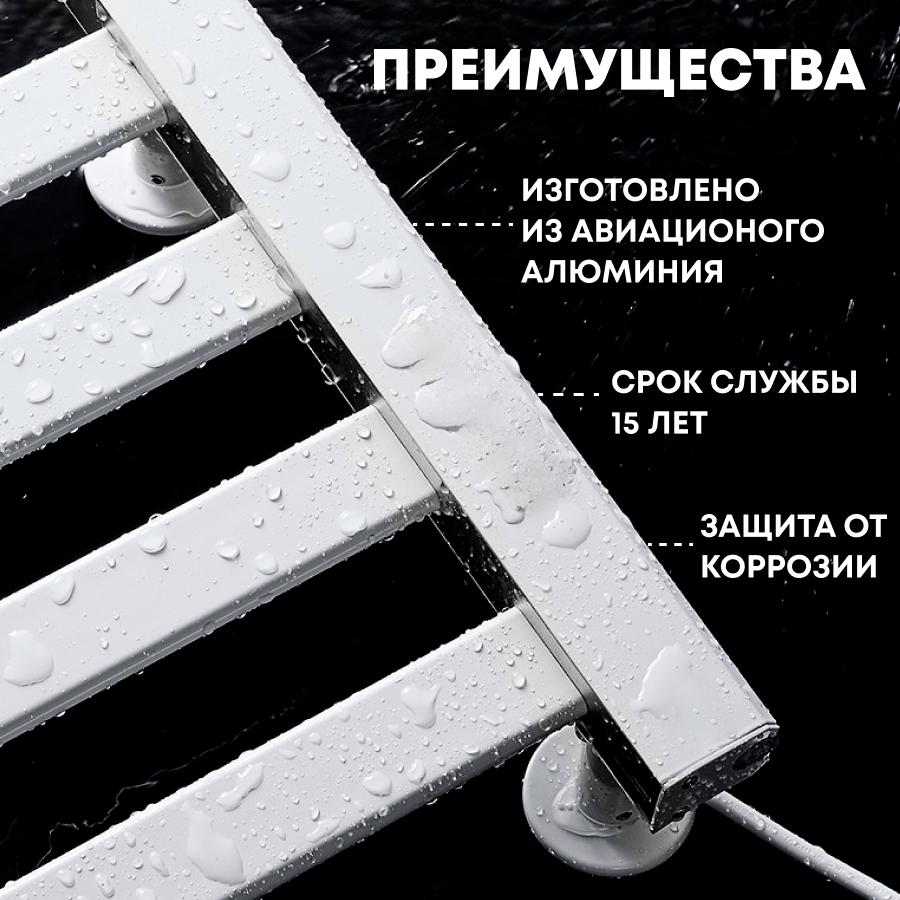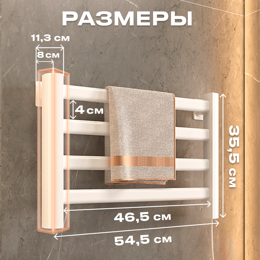 Полотенцесушитель электрический белый, 4 перекладины, терморегулятор, боковое подключение, 45x60